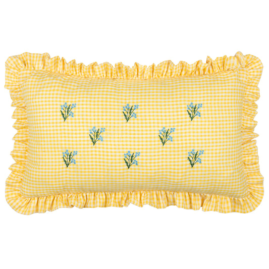Les Petite Fleurs Gingham Ruffle Cushion - Yellow