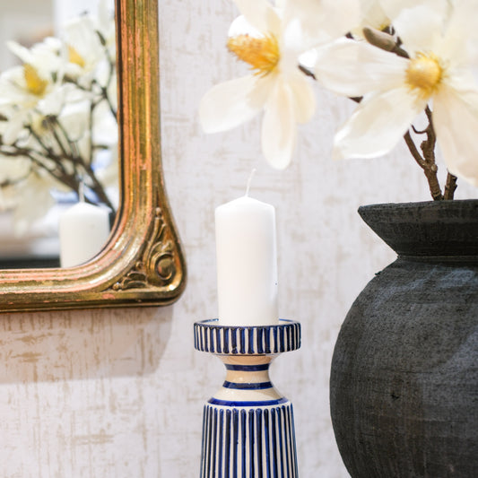 Sold outBlue and Cream Stripe Candle Holder