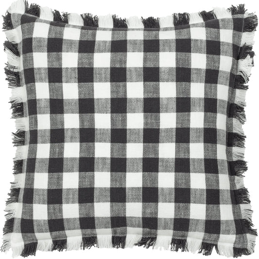Barton Check Fringed Cushion - Black