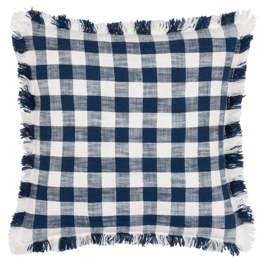 Barton Check Fringed Cushion - Navy