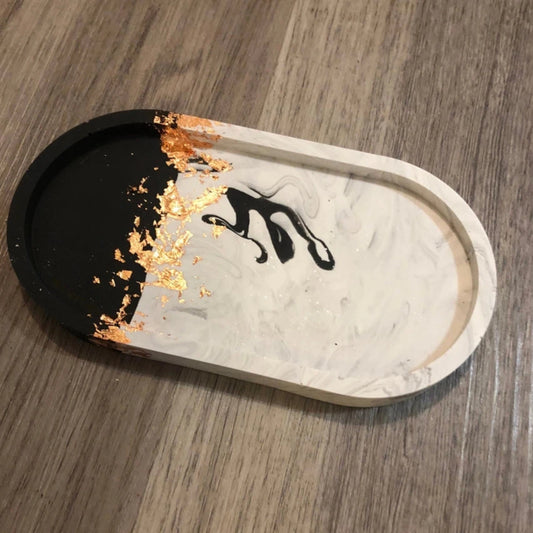 Black & White Marble Oval Tray with Copper Leaf Detail