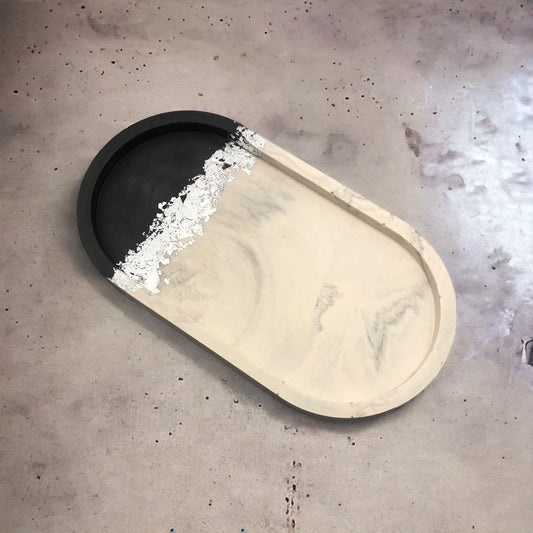 Black & White Marble Oval Tray with Silver Leaf Details