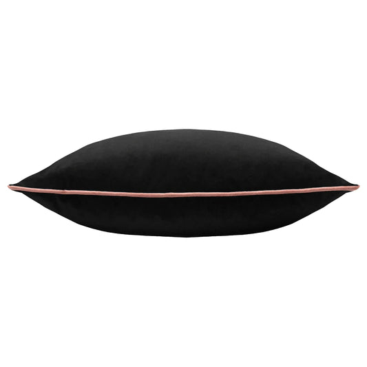 Large Piped Velvet Cushion – Black with Blush Pink Trim