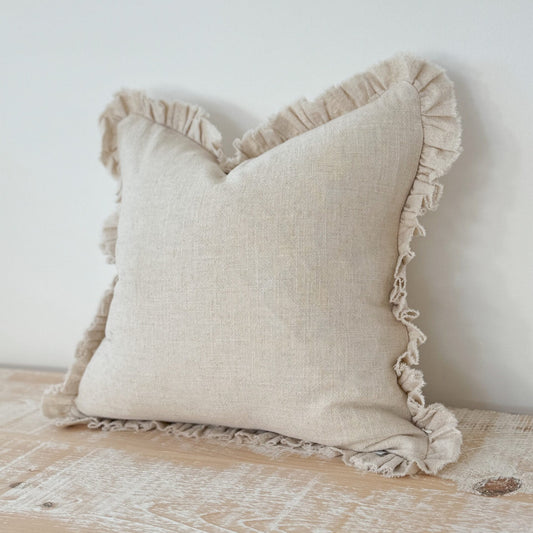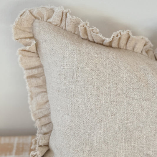 Pink Stripe Rectangular Ruffled Linen Cushion