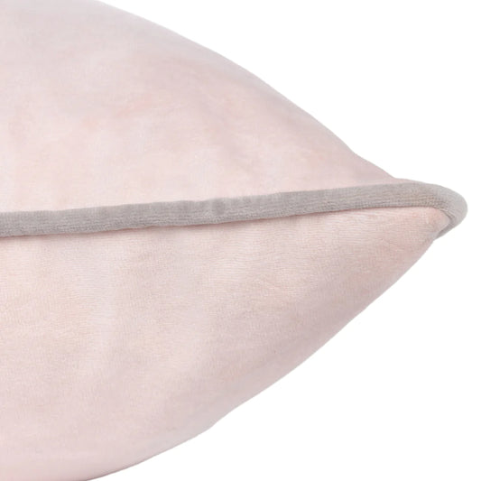 Large Piped Velvet Cushion - Blush Pink with Grey Trim