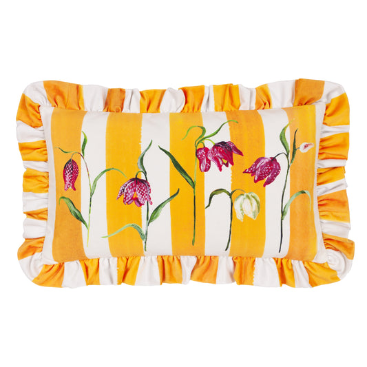 Marais Fritillaries Printed Chenille Cushion Yellow