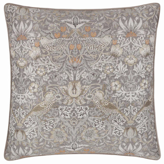 Morris & Co. Strawberry Thief Piped Jacquard Cushion Biscuit