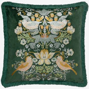 Morris & Co. Strawberry Thief Embroidered Velvet Cushion - Forest Green